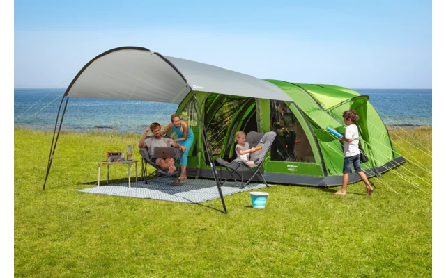 Großes universelles Sonnensegel, das sowohl vor dem Wohnwagen, Bus oder Zelt einen Schattenplatz schafft. Die stabile Bogenstange aus Stahl ist in der Höhe verstellbar von 180 – 230 cm. Geeignet für Fahrzeuge mit einer Anbauhöhe von 180 – 225 cm sowie einer geraden Schienenlänge von 285 cm. Mit Doppelkeder.