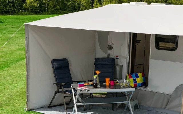 Vielseitiges Sonnenvordach. Kann variabel positioniert werden und somit eine Seitenwand rechts oder links bieten. UV Schutz: 50+