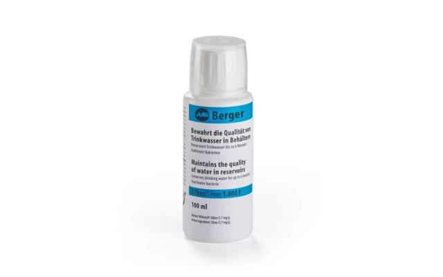 Silberpräparate in flüssiger Form sind bestens zur Frischwasserkonservierung geeignet. Bei diesem Produkt sind die Silberionen bereits gelöst und reagieren unmittelbar mit dem Trinkwasser, sobald sie in den Wassertank gegeben werden. Eine Überdosierung ist ausgeschlossen, denn das Wasser nimmt nur so lange Silberionen auf, bis es gesättigt ist.